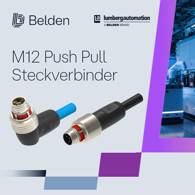 Mit den neuen M12 Push-Pull Steckverbindern der Serien PP12M und RP12M bietet Belden eine zukunftsweisende Lösung für industrielle und transporttechnische Konnektivität. Die Produkte von Lumberg Automation entsprechen dem internationalen Standard IEC 61076-2-010 und ermöglichen eine werkzeuglose, schnell verriegelnde Verbindung – ideal für anspruchsvolle Umgebungen.