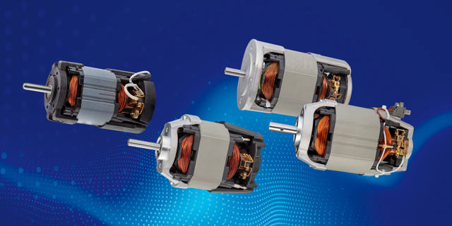 Groschopp bietet Kommutatormotoren (hinten) und permanenterregte Motoren (vorne) und deckt damit ein breites Anwendungsspektrum in der Energieverteilung ab.